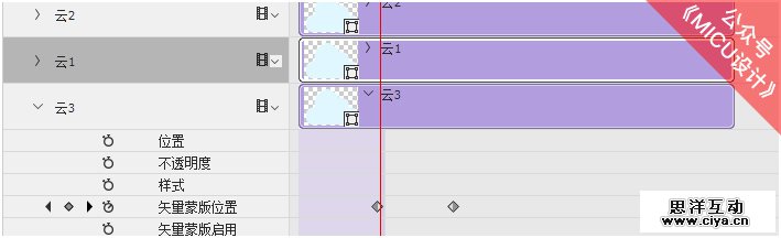 选择“云3”时间轴,然后单击“矢量蒙版位置”,并适当调整云朵的位置,接着将“当前时间指示器”拖曳到10f帧位置,最后继续调整云朵位置。