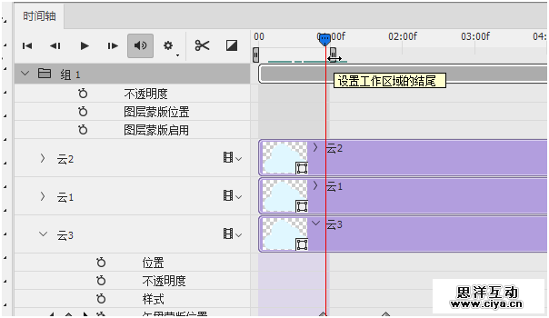 使用相同的方法为“云1、云2”制作动画效果。
