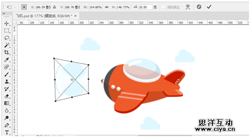 在“时间轴”面板中选择“螺旋桨”中变换图标,然后按Ctrl+T组合键进入自由变化模式,接着按住Alt键适当的调整螺旋桨的透视角度。