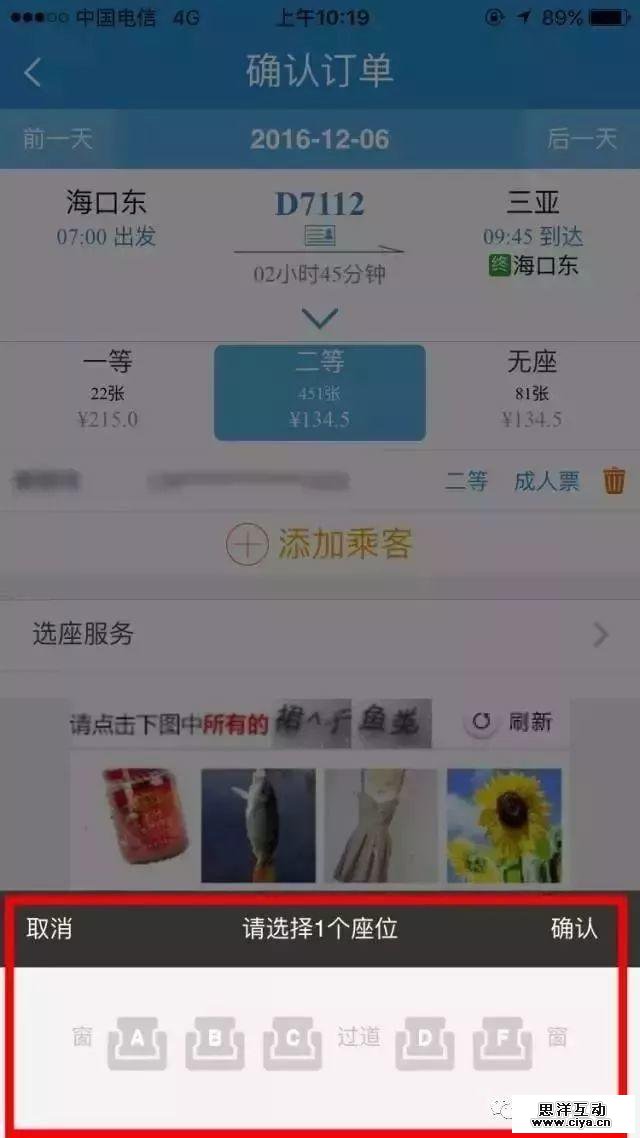 3、接着在完成图片验证后点击【提交订单】即可预定啦~不过这里需要说明的是,若系统提示选座后如果系统票额不足,系统将随机申请席位。