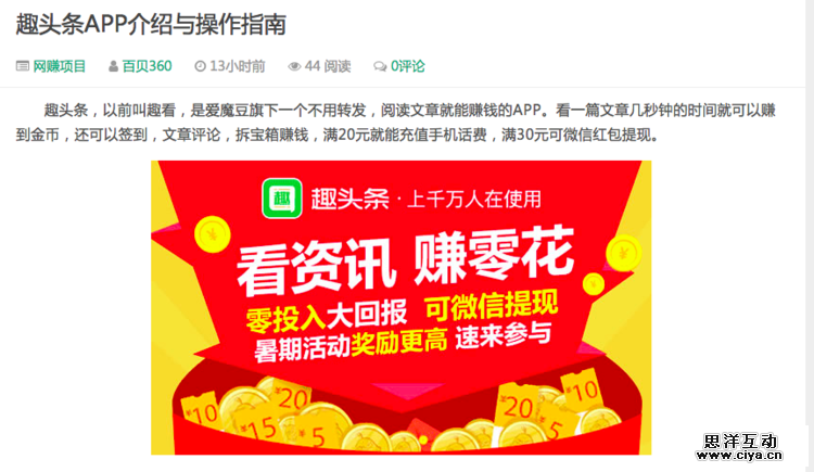 趣头条吸引读者的方式很简单——发钱,直接给读者发钱而不是给作者发钱。