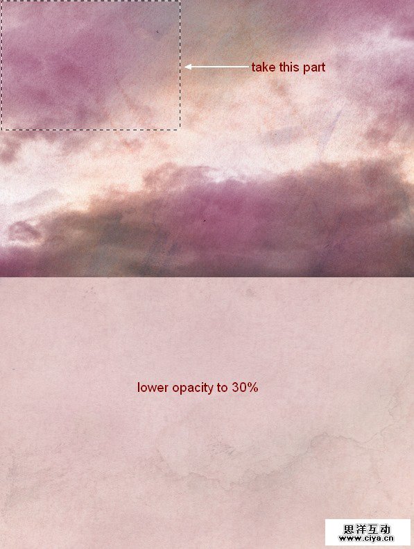 打开图片壁纸2,利用矩形选框工具,选择左上部分,此时选择移动工具(V),将选区拖入画布中,并将不透明度设置为30%。