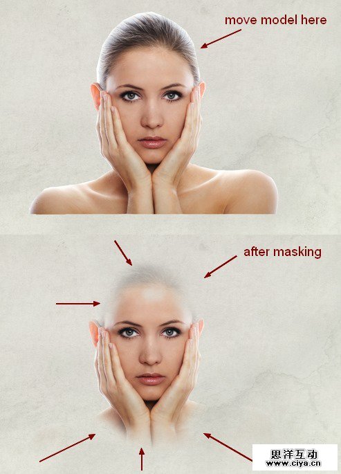 提取主体部分,并将之放在画布中央。然后使用图层蒙版软化硬边,使之与背景相融合。
