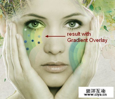 创建一个新的图层,并选中嘴唇区域,用颜色#779370填充,将混合模式设置为 强光 100%。