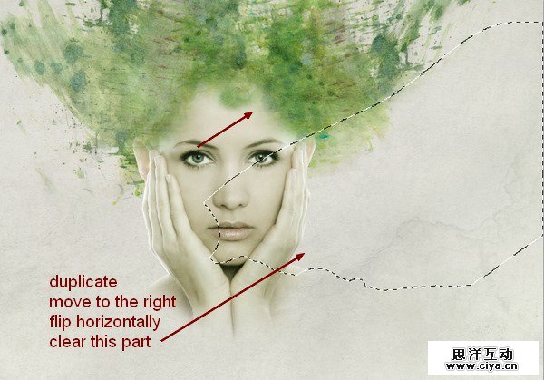 复制此图层并水平翻转,我还是要利用图层蒙版去除掉一些不需要的部分,现在肩膀周围的效果很好了: