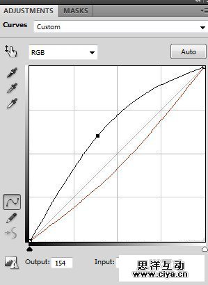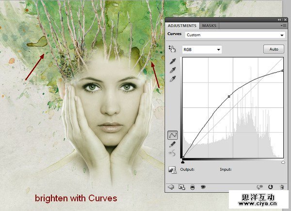 我现在将要添加一个曲线调整图层(勾选使用前一图层的剪贴蒙版),来增加树枝的亮度: