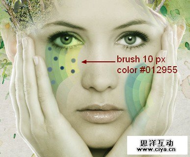 新建一个图层,选择颜色为#012955的硬笔刷,在左眼下方点一些点。在画点前,按F5更改此画笔的设置: