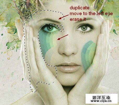 复制此图层,将之移动到左眼下方,利用图层蒙版去掉不需要的部分: