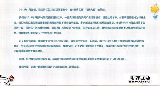 如今,面对 2018 年 1 月“付费抢先“的公告,以及部分B站粉丝直言”陈睿失信“的背后,一向对二次元用户友好、免费的B站,为何在“今年”的新番上面选择了“付费抢先”模式?这其中究竟是商业尝试?还是如同公告所说的“规则妥协”?