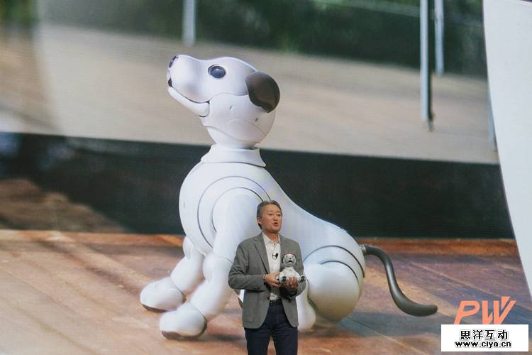 而会场中这种「Wow」的气氛,在平井一夫把机器狗 Aibo 如孩子般抱出来亮相时达到了高潮。
