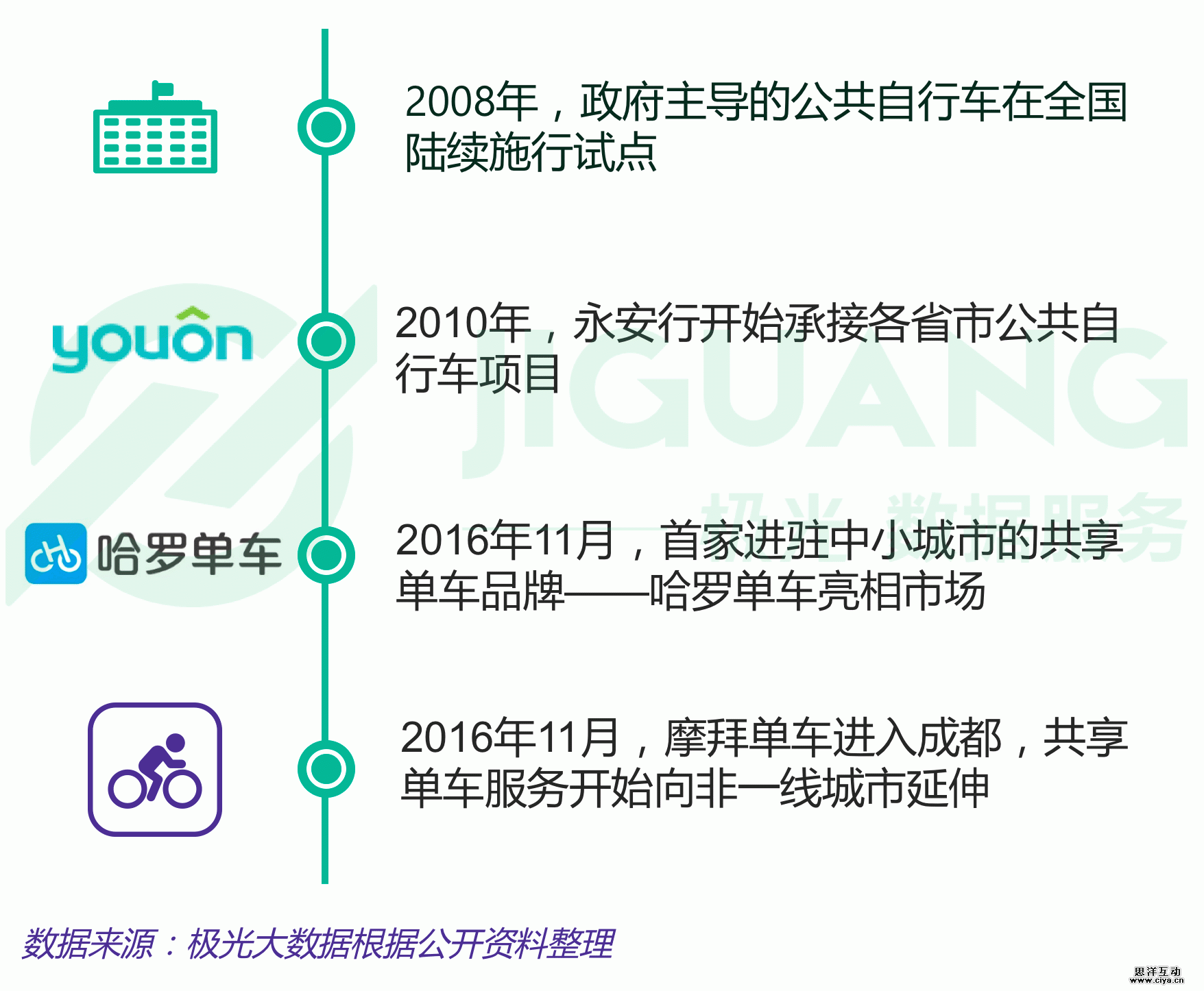 中小城市共享单车属于企业自主运营直接向用户收费的模式,在发展过程中,哈罗单车是首家进入二三线城市,下沉到四五线城市的共享单车品牌;同期,一线城市共享单车向二三线逐步扩展