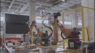 是的,你没有看错。京东的物流配送从入库、包装,到分拣、装车,全程100%由机器人操作,一个配货员、分拣员、打包员都没有!