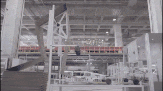 无人机将货物送到无人智慧配送站顶部,并自动卸下货物。从入库、包装,到分拣、装车,全程100%由机器人操作,一个配货员、分拣员、打包员都没有!