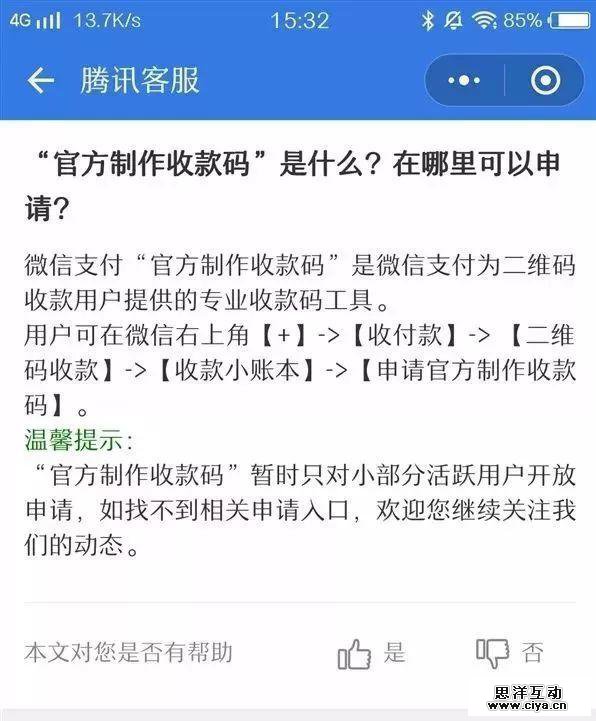 官方收款码并没对所有用户开放。
