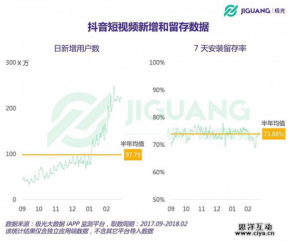 从上述数据表现可知,抖音短视频目前仍处于高速增长阶段。尽管已经迈过用户保有量过亿、日活跃用户数过千万的门槛,抖音短视频仍然吸引着大量的新用户去安装和使用。