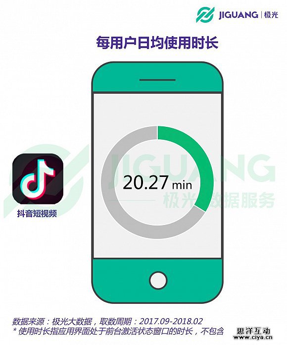 尽管每则视频的时长只有15秒左右,但抖音对用户时间的占据却不容小觑。根据极光大数据的统计结果,在过去半年中,平均每位用户每天在抖音上消耗的时长达到20.27分钟。