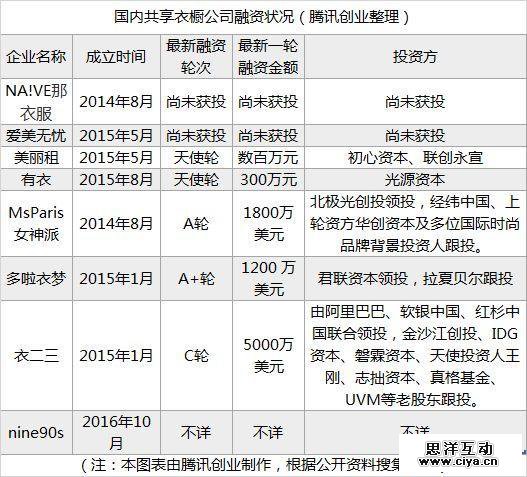 1、共享衣橱行业融资轮次整理