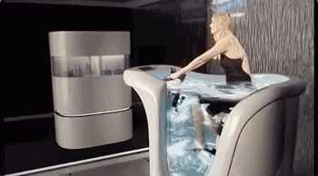 FitWet 是一种新型的骑行运动浴缸。简单看去就是浴缸里放了一个健身车。实际上它将水疗法、色光疗法、肌肉健身、减肥等多种功能结合到了一起。