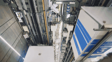这个电梯配备有安全的多级制动系统、丰富的无线数据和能耗管理功能,并通过电梯井道向轿厢传递感应电能。
