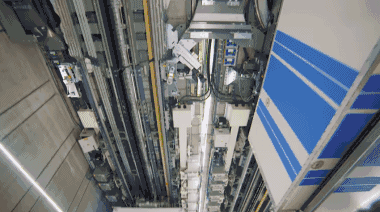 这样一来就实现了连续环行,轿厢从一个井道上行,从另一个井道下行。这不仅能大大缩短等电梯的时间,与常规电梯系统相比, MULTI 还能提升50%以上的载客量,且最多可将峰值电力需求降低60%。