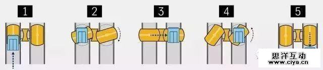 更牛的是,这种创新的转轨系统允许两个井道首尾水平相连。