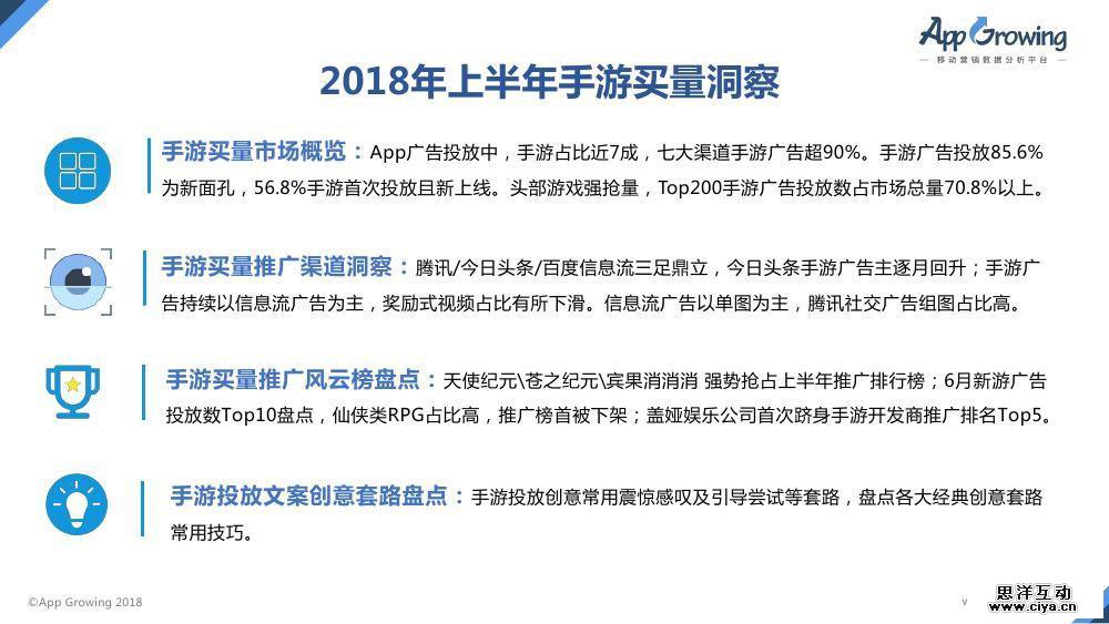 哪些流量渠道更受游戏厂商的偏好,哪些渠道更具发展潜力?哪些游戏买量巨头投放持续投放力度大,巨头的投放布局有哪些调整?除了铺天盖地的鲲文案,手游买量还有哪些常用套路?AppGrowing以2018年上半年所追踪的手游移动广告投放情报为依据,发布《2018年上半年中国手游买量市场分析报告》。