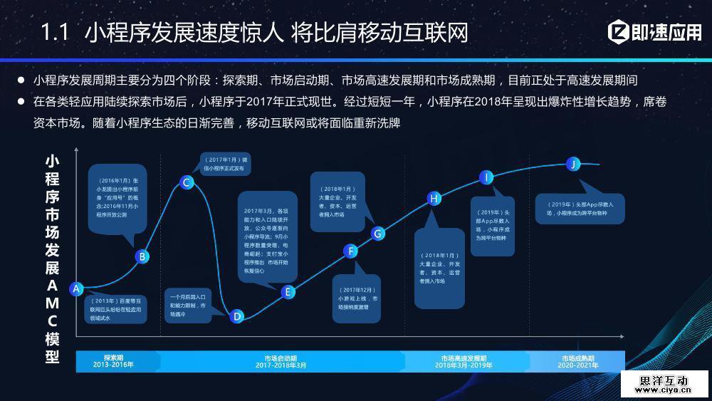 100万已发布小程序、150万开发者、2000款小游戏……上线16个月后的小程序已经进入高速发展的2.0时代,7月百度入局更是加速了小程序一超多强局面的形成,小程序生态呈现空前繁荣局面,移动互联网或将面临重新洗牌。近日,即速应用发布了一份《2018年小程序生态进化报告》,分别从小程序生态变迁、用户行为进阶分析、热点行业市场表现、第三方开发服务商发展四个维度对小程序现状进行深度剖析,并推测出小程序未来发展趋势。